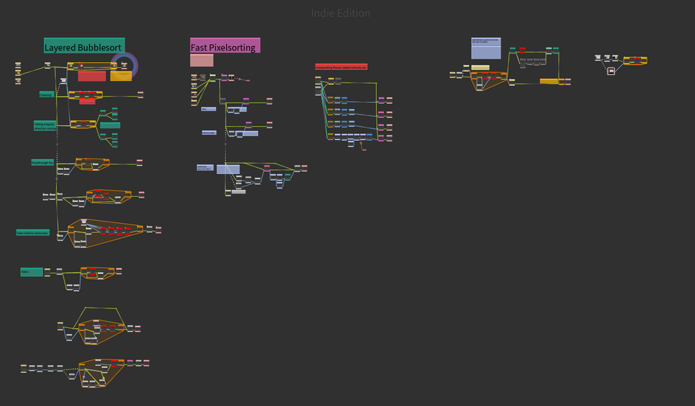 - 2 custom main sorting nodes written in OpenCL (two row bubblesort / Fast Pixelsorting)
